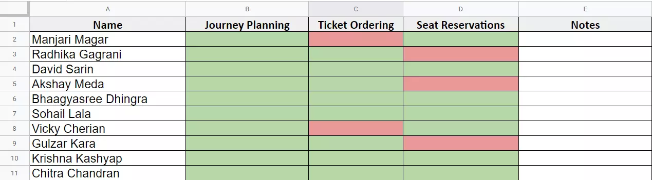 Working with the spreadsheet, you can assess the success of your UX design. If ten people test three features, that makes for 45 (10x3) tasks.