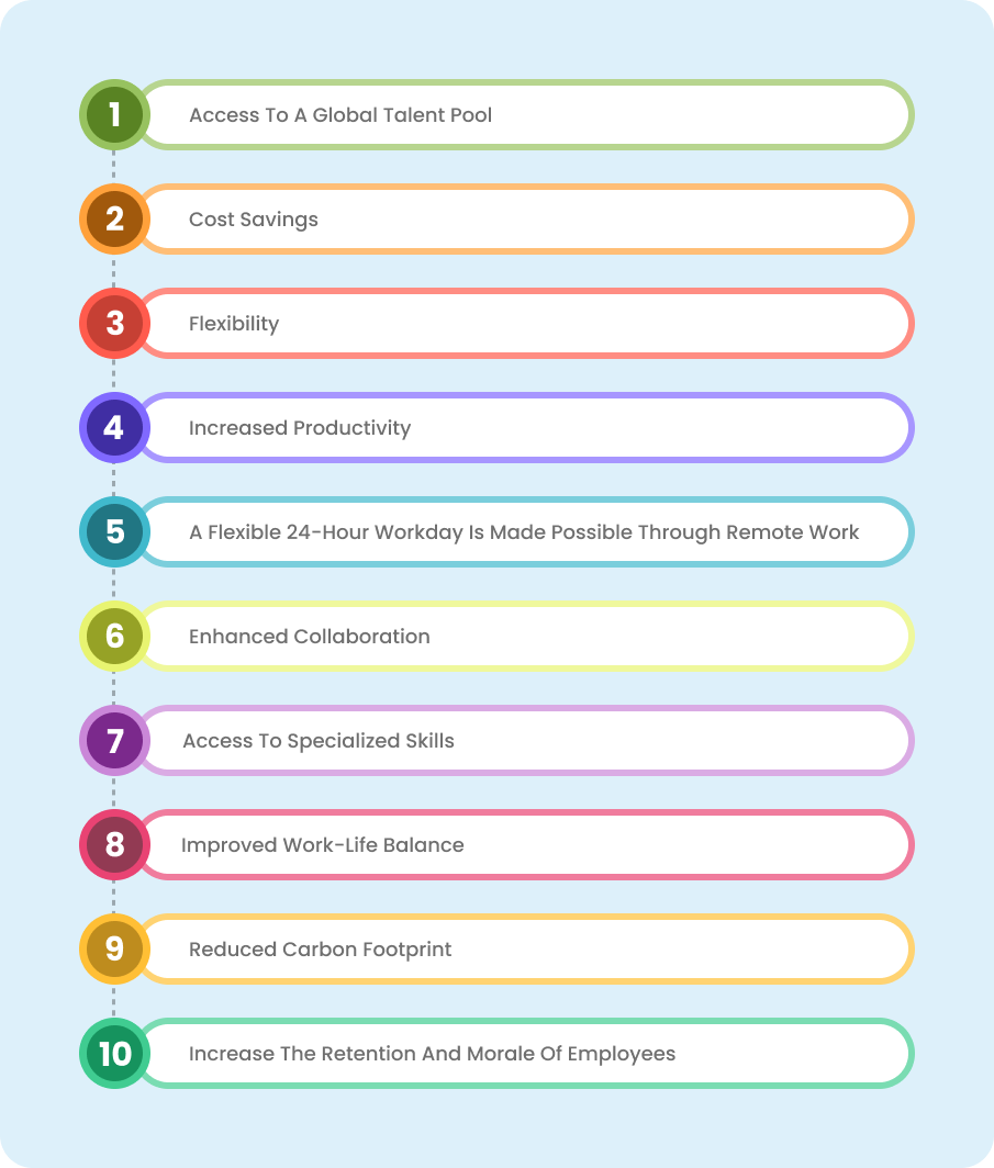 Working remotely offers flexible hours that are advantageous to both businesses and employees. In order to guarantee the best possible outcome and execution, remote developers can choose their own work schedule at their own pace.